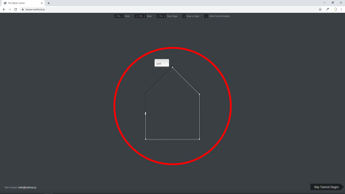 튜토리얼(tutorial) 단계에서 기초적인 형태를 연습할 수 있습니다. 마우스 포인터로 해당 꼭지점을 클릭해 보세요.