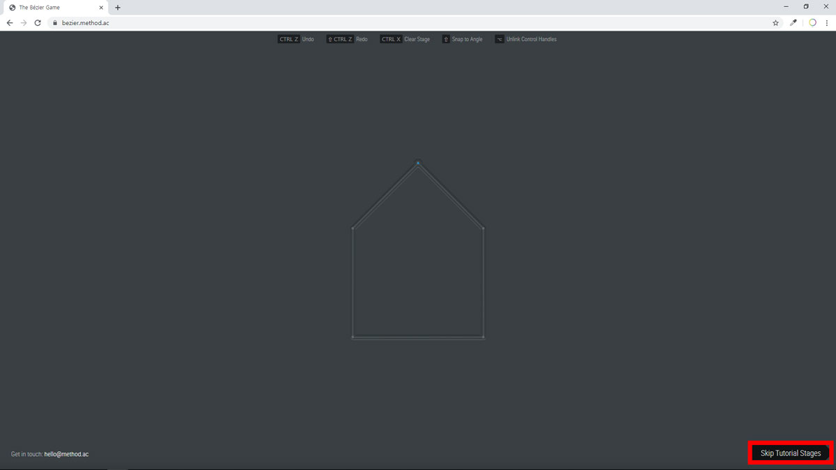 기본적인 펜툴 연습을 마쳤으면, 화면 오른편 아래쪽 튜토리얼 단계 건너뛰기 버튼을 클릭하세요.